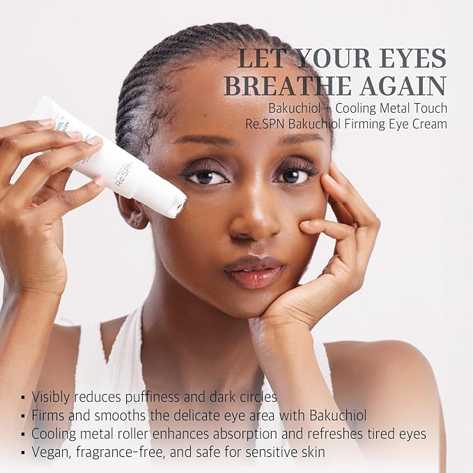 Re.SPN Bakuchiol Firming Eye Cream with Cooling Metal Roller – Clinically Proven Moisturizing Eye Cream for Puffiness, Wrinkles & Dark Circles | Vegan, Fragrance-Free, Korean Skincare (0.67 fl oz)