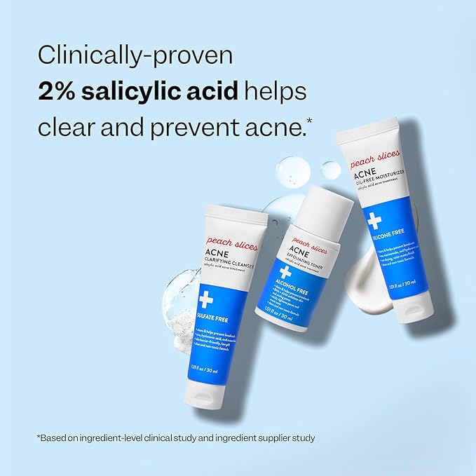 Peach Slices - 3-Step Acne Starter Kit (3 Products) - Skin Care Set - 1 Toner, 1 Cleanser, 1 Oil Free Moisturizer - 2% Salicylic Acid & Botanicals - Vegan & Cruelty Free - Korean Skin Care & Beauty