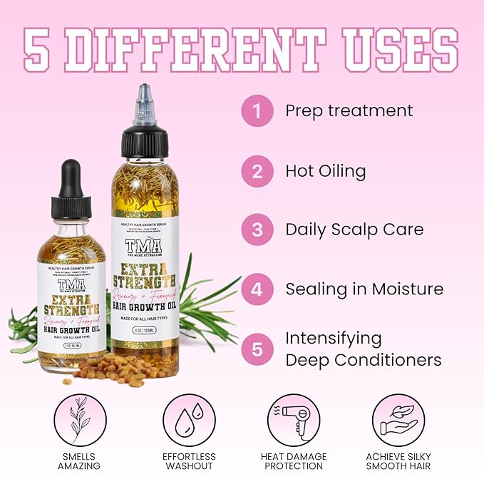 The Mane Attraction Extra Strength Rosemary + Fenugreek Herbal Hair Growth Oil | Infused With Castor Oil for ALL Hair Types Mini, 2oz