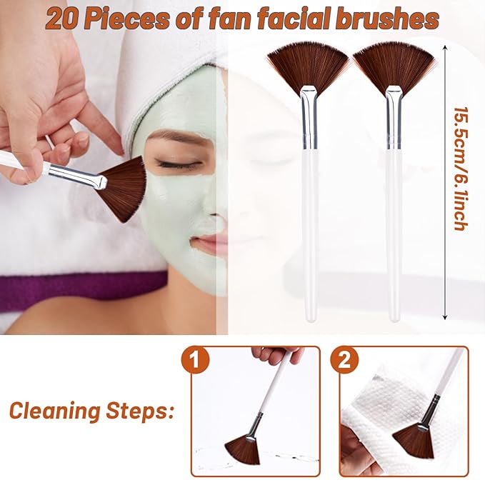 - Wide Application: Facial Fan Brush is widely used in peel, facial mask, creams, essences, cosmetic for professional spa salons and home. Soft and hygienic, safe for sensitive skin use, easy to apply thin layers of skincare products evenly