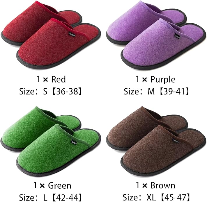 - Various Sizes & Color Options: We offer four sizes ranging from S to XL (S: 36-38 EU, M: 39-41 EU, L: 42-44 EU, XL: 45-47 EU), with a variety of colors to choose from. This ensures there’s an option for every family member, combining practicality with aesthetic appeal. Each pair of slippers comes individually packaged in a bag.