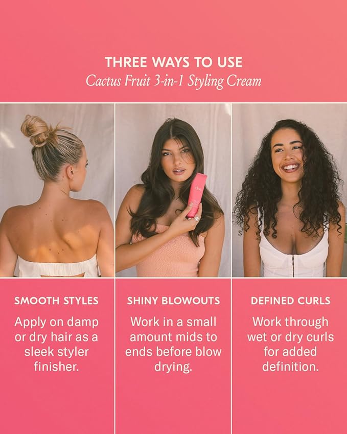 - SIGNATURE BLEND - Our Cactus Fruit 3-in-1 Styling Cream is a clean, multitasking formula that smooths styled hair, preps shiny blowouts, and defines natural curls.