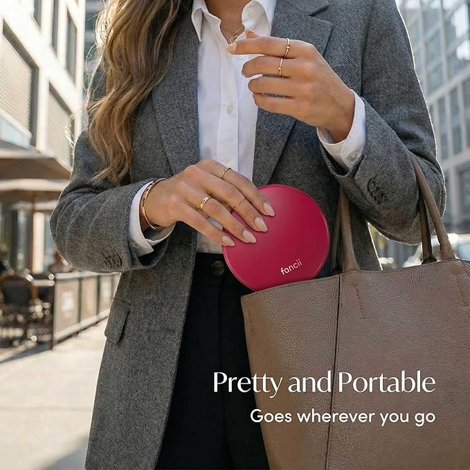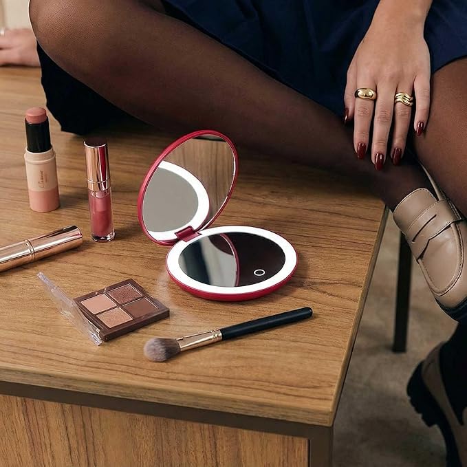 Fancii Taylor LED Lighted Travel Makeup Mirror, Rechargeable, 10x /1x Magnifying, Tru-Glow Light Technology, XL Large 5” Wide | Compact Mirror for Purses (Ruby Red)