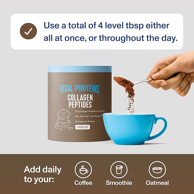 - Delicious Chocolate Collagen Peptides: The same grass-fed, pasture-raised collagen you know and love, but with an added flavor boost from alkalized cocoa powder and a touch of stevia.