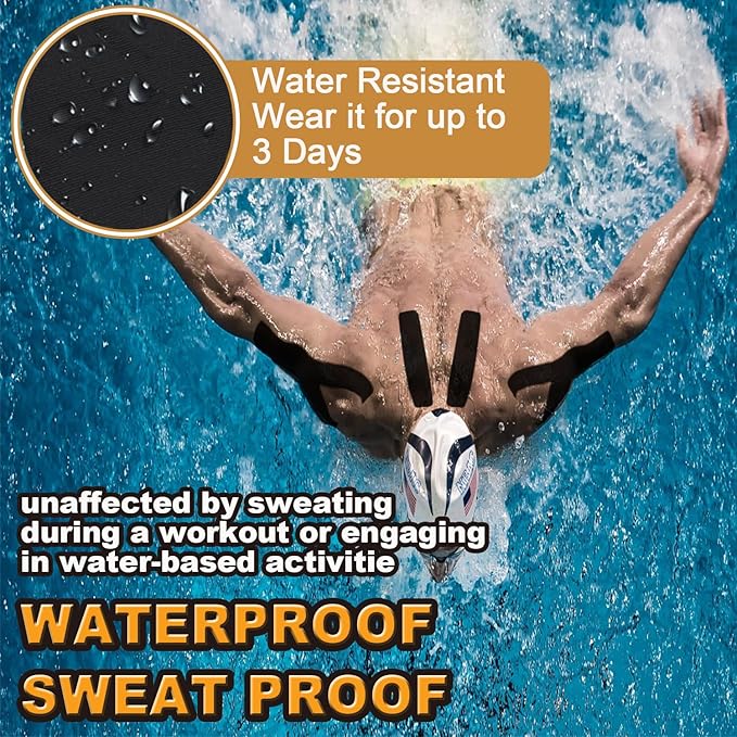 - ✔ MEDICAL-GRADE ADHESIVE Medical grade,safety, non-toxic.Premium German adhesive technology keep it stays securely in place for 3-5 days even through intense workouts, sweat, and showers.and is hypoallergenic to minimize the possibility of skin irritation, itching and blisters. Gentle on sensitive skin.It is soft, breathable and stretchy to better relax your muscles and Joint.