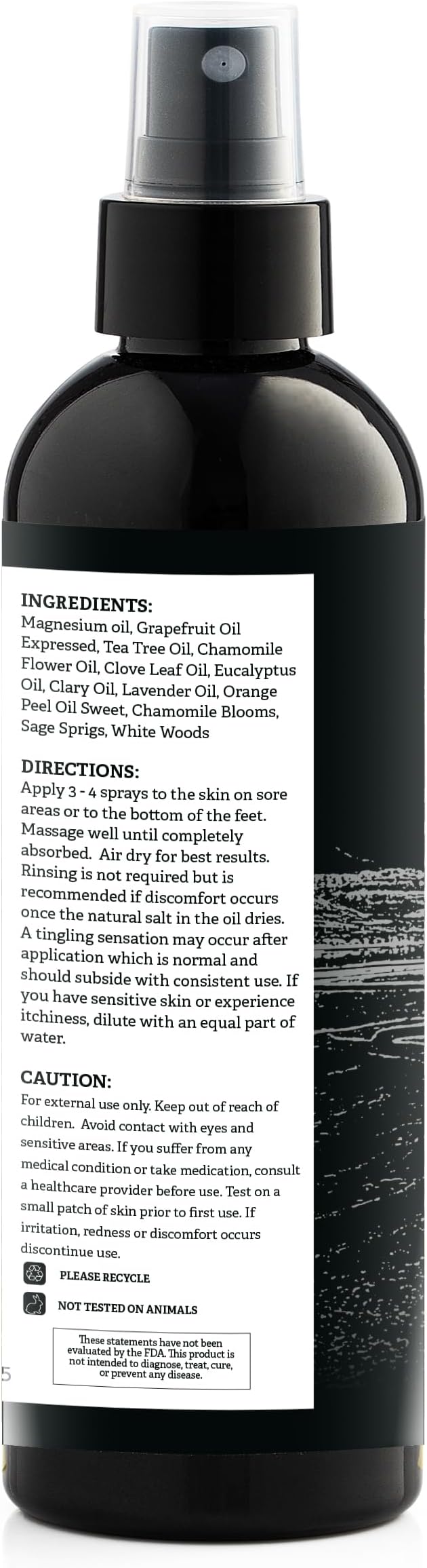 - USING MAGNESIUM OIL SAFELY: While the skin may feel sticky temporarily, the Magnesium oil spray for feet will dry quickly, leaving you with lasting effects. If you experience itchiness, redness, or a burning sensation when using , gradually increase the amount to build up tolerance and avoid discomfort.. Please note that this spray is not recommended for those with sensitive skin.