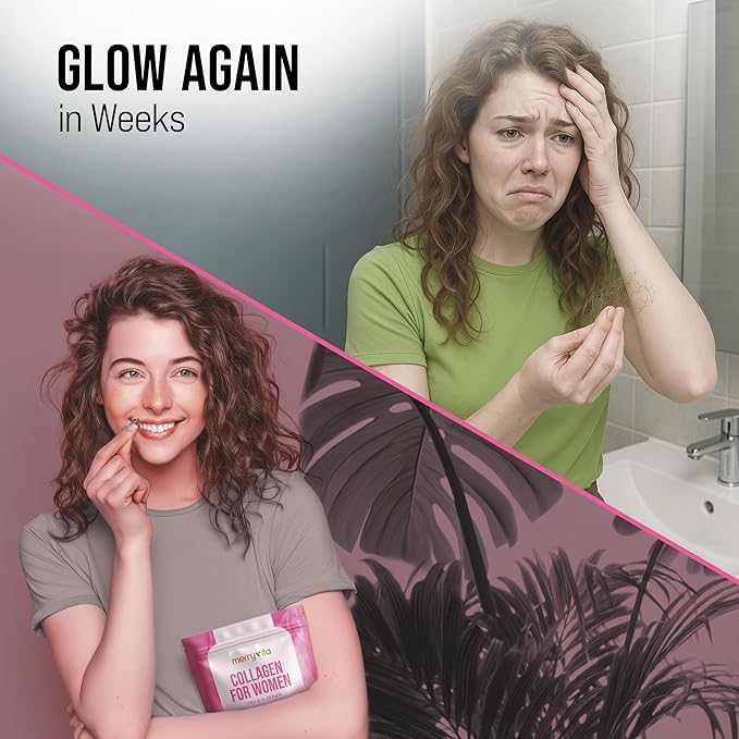 - β π¨ππ§ππ ππ§π ππππ¨π§π¬ ππππ‘π β To help you reclaim your glow, MerryVita combines collagen peptides with a powerful blend of Vitamin C, Vitamin E, Folate, Biotin, Pumpkin Seed, MSM, Hyaluronic Acid, Saw Palmetto, Apple Cider Vinegar, Green Tea, Japanese Pagoda, Glutathione, Black Pepper, and Astaxanthin.