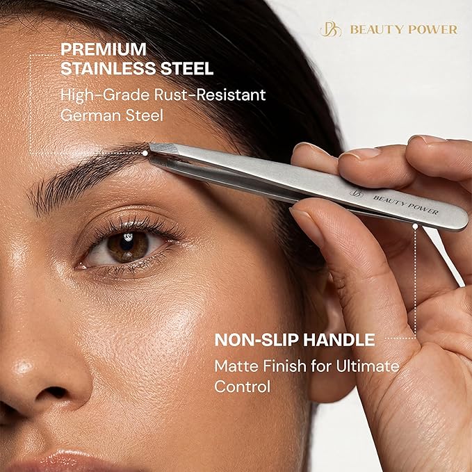 - PREMIUM GERMAN STAINLESS STEEL: Built from high-quality German stainless steel for exceptional strength and longevity. These tweezers resist rust, corrosion, and wear, retaining their sharp grip over time. Whether used daily or occasionally, they maintain performance and precision, making them the go-to choice for beauty professionals and home users alike.