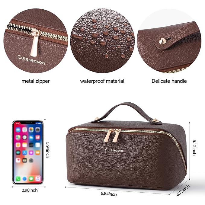 - SPACIOUS DESIGN: Cosmetic travel bag is 9.84 inches long, 4.72 inches wide, 5.12 inches high, with 180°wide open design, it is convenient for you to take out the items you need quickly.