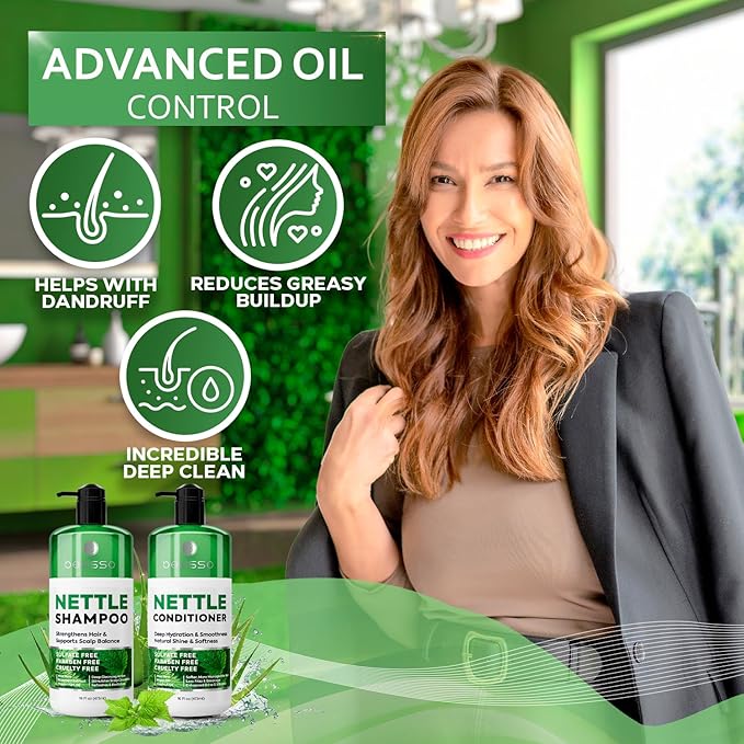 Nettle Shampoo and Conditioner Set - Sulfate Free to Boost Volume - Thickening, Strengthening, Volumizing Formula for Fine and Thinning Hair Women and Men - 16 Fl Oz (Pack of 2)