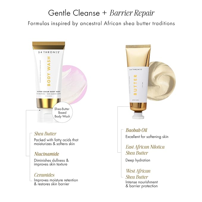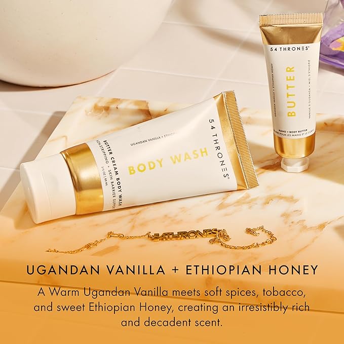 54 Thrones Sensitive Skin Bundle, Mini Non-Stripping Butter Cream Body Wash + Mini African Beauty Butter, Moisturizing Body Butter for Women & Men, Shea Moisture, Ugandan Vanilla + Ethiopian Honey