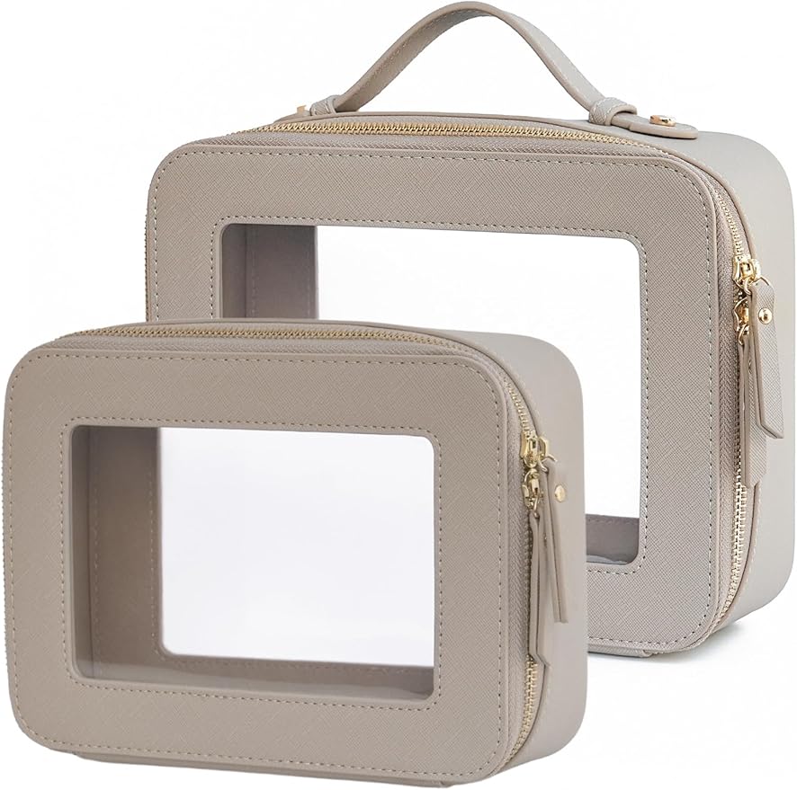 - [Two-Piece Set] – The clear bag set consists of two different sizes, specifically designed to separate makeup and skincare products effectively. The medium size measures 8.3'' x 6.1'' x 2.4'' (21cm x 15.5cm x 6cm), the large size measures 9.6'' x 7.5'' x 3.1'' (24.5cm x 19cm x 8cm).