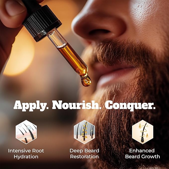 - 🌿 NATURAL BLEND FOR ULTIMATE BEARD CARE - Our premium beard oil is the pinnacle of beard care. Infused with nutrient-rich jojoba, argan, and grapeseed oils, this powerful formula nourishes, strengthens, and softens even the toughest beards. From root to tip, it helps reduce breakage, fills in patchy areas, and promotes thicker, fuller growth for a healthier, more confident look.