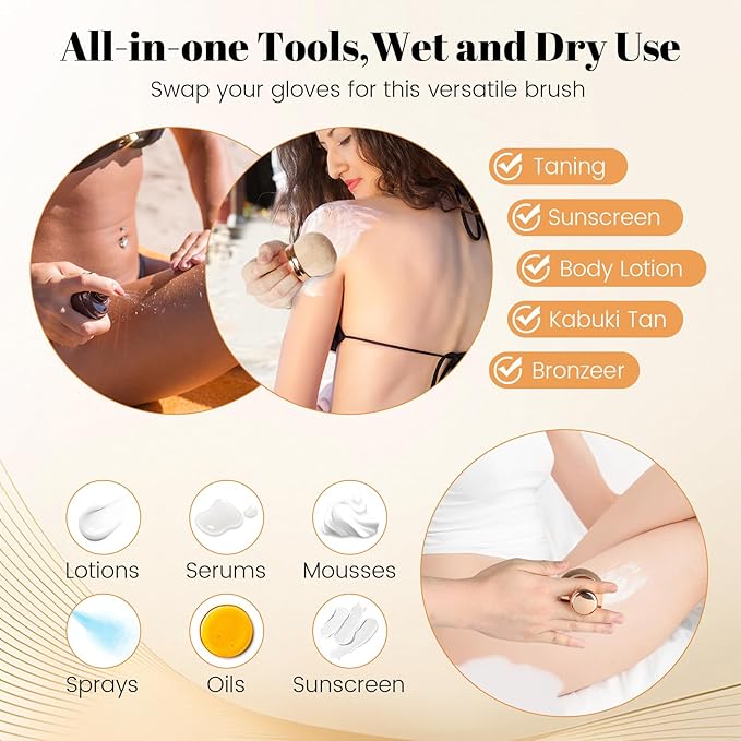 - SMOOTH AND EVEN COVERAGE: This big self tanner brush, a versatile body brush for self tanner, delivers a streak-free, seamless finish. Thick bristles ensure even application with self-tanning mousse, lotion, or spray—ideal for wedding body makeup (flawless base essential), vacation self tanning (sustains sun-kissed glow), party body glow (adds radiant touch), event body coverage (polished skin), and photoshoot body makeup (precision key). This tanner blending brush guarantees professional results without blotches or streaks, fit for any occasion.