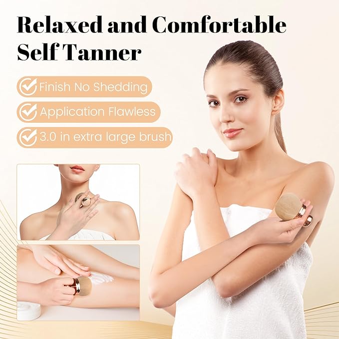 - HIGH QUALITY MATERIAL: Our professional big kabuki makeup brushes for body and body tanner brush feature premium synthetic bristles—soft yet dense, ensuring they deliver streak-free, even application. Free from harmful substances, these bristles are not only durable but also easy to clean and reusable, guaranteeing luxuriously long-lasting performance for repeated use. Paired with a lightweight build and ergonomic handle, they combine quality and functionality to elevate every use.