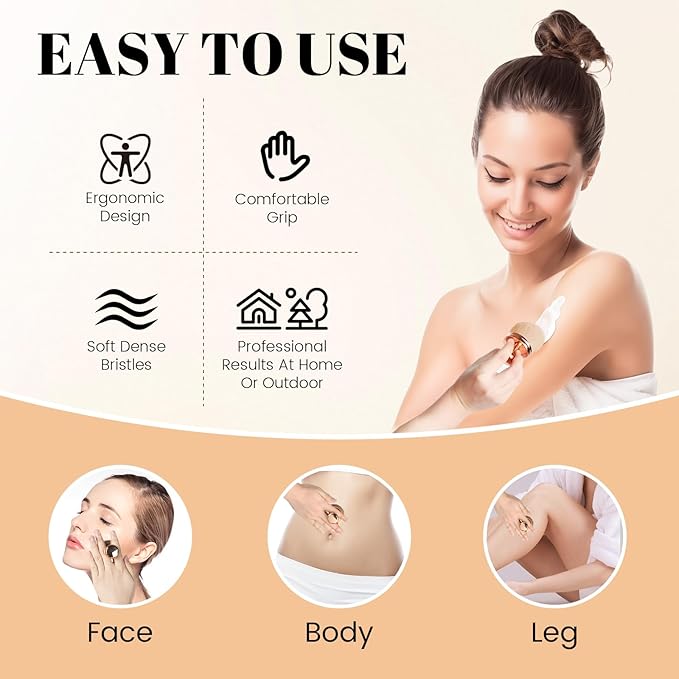 - ERGONOMIC DESIGN: This kabuki brush for self tanning, with rose gold handles, is ergonomically shaped for precise control and easy blending—ideal as a blending body brush for self tanner, blend and blur body brush, or body bronzer brush. Perfectly suited for at-home self tanning sessions, it seamlessly fits into your home body makeup routine, whether you’re handling daily body coverage or prepping with self-tan prep steps, ensuring comfortable, efficient use every time.