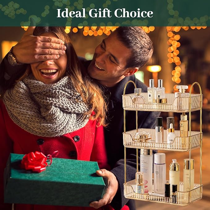 Bathroom Counter Organizer Countertop, 3 Tier Makeup Perfume Shelf Storage, Skincare Cosmetic Tray for Dresser Vanity - Gold