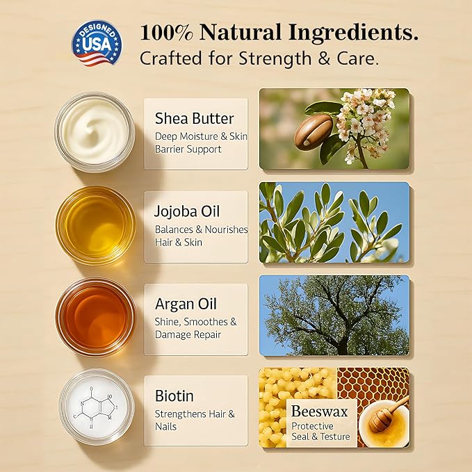 - Maximum biotin concentration balm and oil set with 60G balm and 60G oil for men, enriched with jojoba oil, castor oil, shea butter, beeswax,and vitamin E to promote beard growth and softness