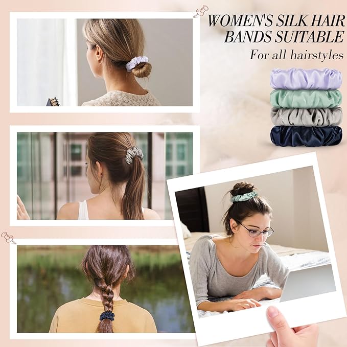 - Multifunctional Silk Hair Tie: Our silk scrunchies suitable for daily use, parties, wedding, work, sports, travel, and birthday, easily paired with clothing in various colors and fabrics and can also be worn on the wrist as a decoration.