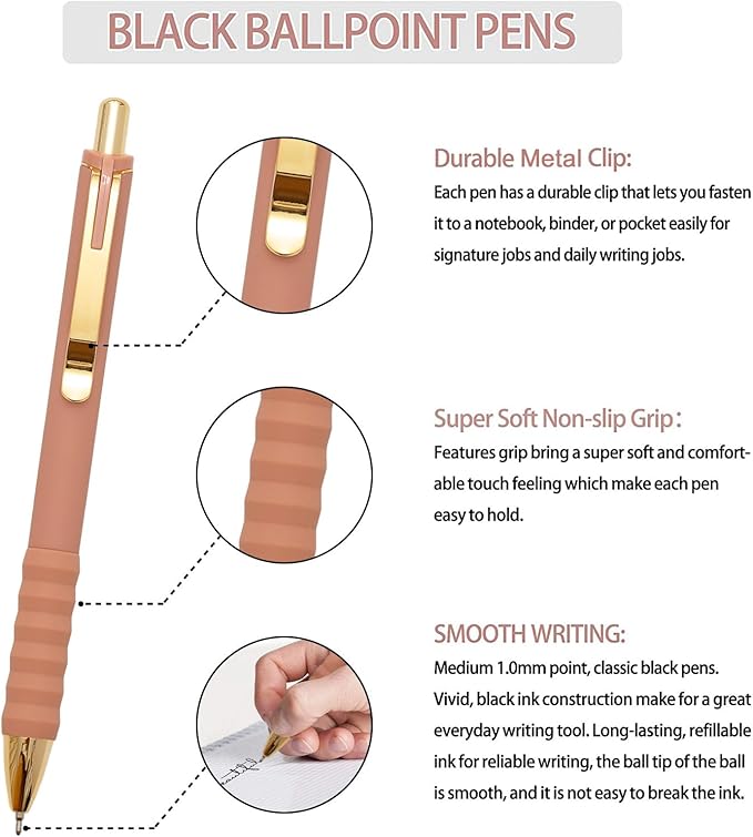 - Super Soft Non-slip Grip: Features grip bring a super soft and comfortable touch feeling which make each ballpoint pen easy to hold