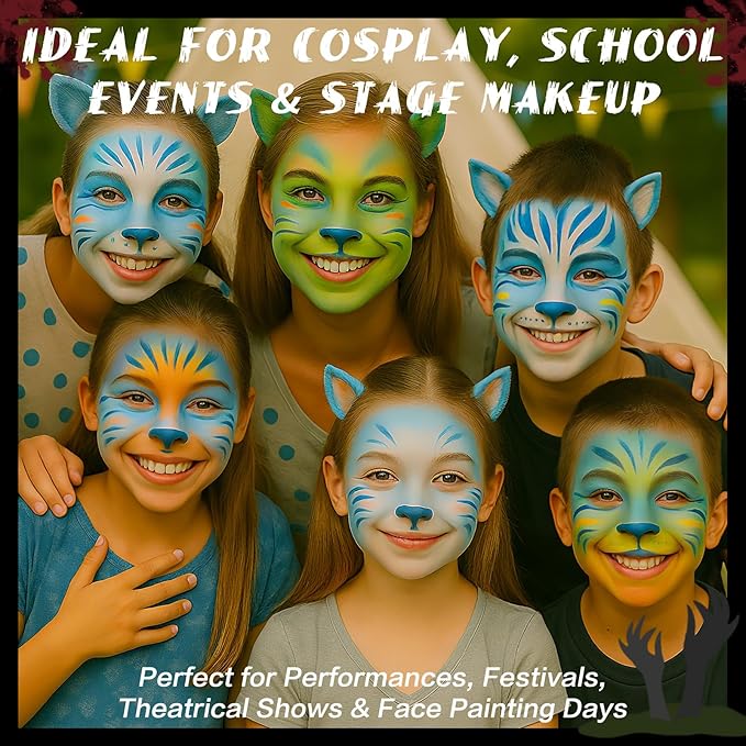 - 【Skin-Safe & Multi-Purpose】Formulated with non-toxic, vegan, and paraben-free ingredients, this cruelty-free paint is gentle on all skin types. Great for adults, beginners, and professionals. Can also be used as an eye black stick for football, baseball, softball, or hunting camo.