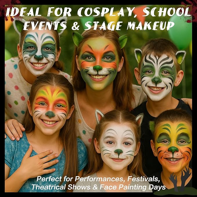 - 【Skin-Safe & Multi-Purpose】Formulated with non-toxic, vegan, and paraben-free ingredients, this cruelty-free paint is gentle on all skin types. Great for adults, beginners, and professionals. Can also be used as an eye black stick for football, baseball, softball, or hunting camo.
