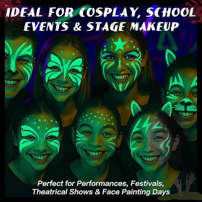 - 【Washable Face & Body Paint Stick】A creamy, water-based neon green face paint stick designed for face and body. It applies evenly and delivers smooth, full coverage. Perfect for character shading, base layers, quick costume prep, or bold color blocking—an essential tool in any face painting kit.