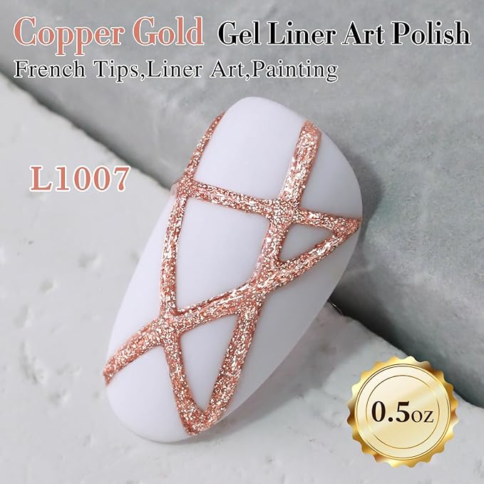 Double Rhythm 15 Ml Metallic Gel Liner Nail Art Gel Bronze Mirror Chrome Painted Drawing Stripper 3D Effect Gel Polish (Glitter Copper Gold-L1007)