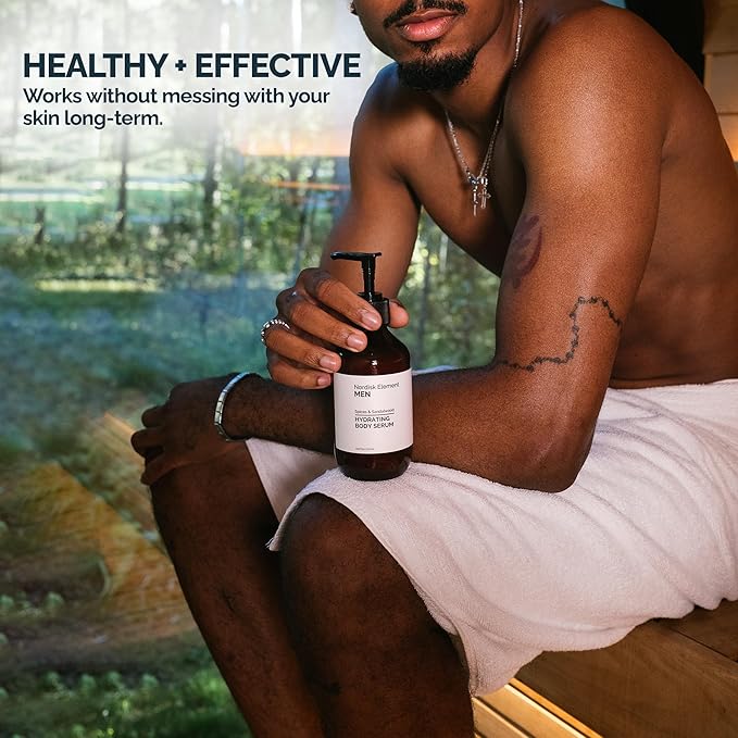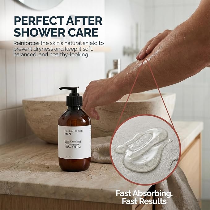 Nordisk Element Body Serum for Men, 9.13 Fl Oz | Lightweight & Instant Hydrating Serum with Hyaluronic Acid, Antioxidants & Nordic Botanicals | Vegan, Spices & Sandalwood Scent