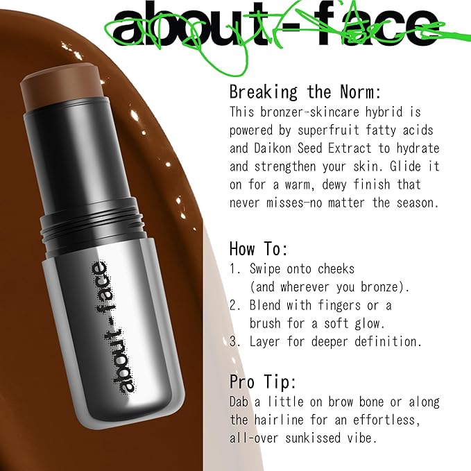 about-face Beach Freak Bronzer Stick Surf Curse– Ultra-Creamy, Vegan Bronzer & Contour Stick with Skincare Benefits – Dewy Finish – Hydrating Formula with Daikon Seed Extract – Medium