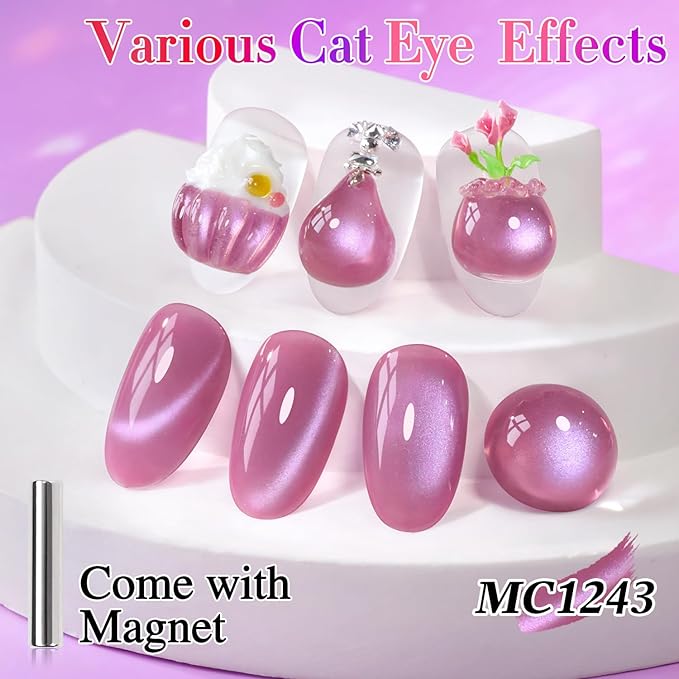- Cat Eye Gel Nail Polish : Double Rhythm cat eye gel nail polish kit includes 1 color 15ml / 0.5 fl.oz gel nail polish. The cat eye gel can be combined with different bacse colors arbitrarily, you can get different colors nail art.You can use different base coat to creat different sytles.