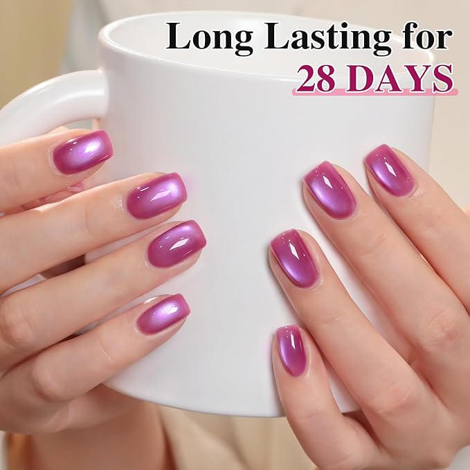 - Cat Eye Gel Nail Polish : Double Rhythm cat eye gel nail polish kit includes 1 color 15ml / 0.5 fl.oz gel nail polish. The cat eye gel can be combined with different bacse colors arbitrarily, you can get different colors nail art.You can use different base coat to creat different sytles.