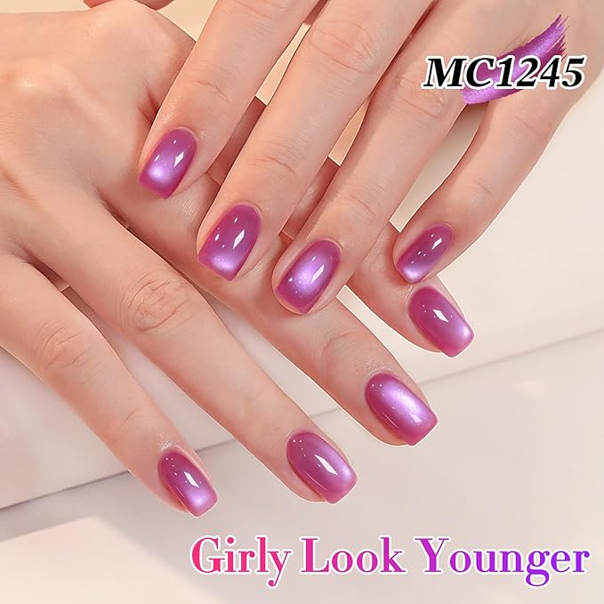 Double Rhythm 15ML Ice Glass Cat Eye Gel Polish with Magnet Holographic Glitter Shimmer Translucent Sheer Color Salon Soak Off Magnetic Nail at Home (Grape Purple-MC1245)