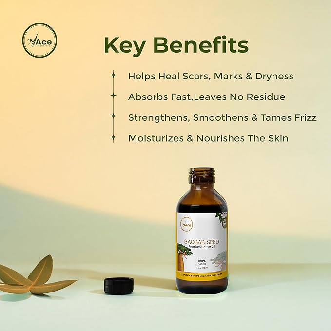 - Premium Quality Baobab Carrier Oil: My Ace's Baobab Oil is obtained through cold-pressed extraction of Adansonia digitata seeds. Our Baobab oil is free of preservatives and it isn't tested on animals. For ease of use, it comes with a dropper.
