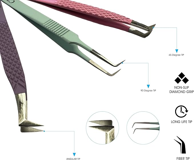 - PERFORMANCE FEATURES Our precision-engineered tweezers are designed for expertly selecting, isolating, and picking up eyelashes, making them an essential tool for working with lash extension supplies. As individual lash tweezers, they provide unparalleled control and accuracy. The fine curved tweezers for lashes allow for smooth, precise movements, while their design as tweezers for facial hair or eyelash tool applicators ensures versatility and effectiveness in various applications.