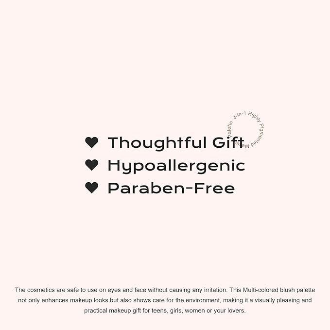 - Ultra-Smoothy Glow-Giving Formula - Crafted for a luxuriously creamy, lightweight texture, this palette delivers a dewy, luminous finish. Perfect for all skin types (including sensitive skin), it blends effortlessly for glowy blush, soft contour, and lit-from-within highlighter—achieving a radiant, natural look that feels comfortable and breathable.