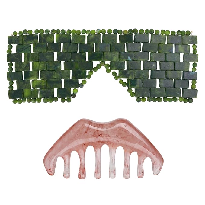 - Good Use Experience: Selected warm jade and high-quality bead material, jade eye mask for facials touch skin-friendly, wear no burden; jade comb surface smooth, comb teeth rounded, contact with the skin when the gentle non-scratch pain