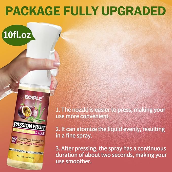 - Revive and Thrive with Anti Itch Braid Spray: Transform dull, dry braids with braid spray, a powerhouse leave-in conditioner infused with passion fruit hair oil. Specially formulated as loc spray moisturizer, it nourishes the scalp. This loc spray strengthens hair from root to tip