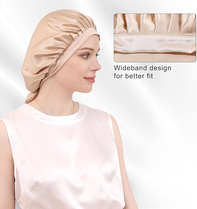 • LAUNDRY TIPS:The sleeping hair bonnet is made of silk, we recommended to wash it by hand. Use a mild detergent for hand or machine wash. Please hang the silk hair cap in a ventilated and cool place to air dry naturally. Please use cold ironing