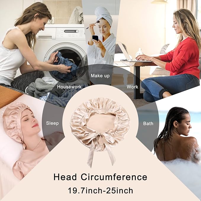 • WITH ADJUSTABLE RIBBON : Silk hair bonnet for sleeping is loose and comfortable with adjustable ribbon and elastic straps at the back. Whether you have long or short hair, straight or curly hair, the silk hair bonnet will protect your hair. You can use it while sleeping, doing housework or relaxing. It can also be given as a Christmas Thanksgiving gift to your family