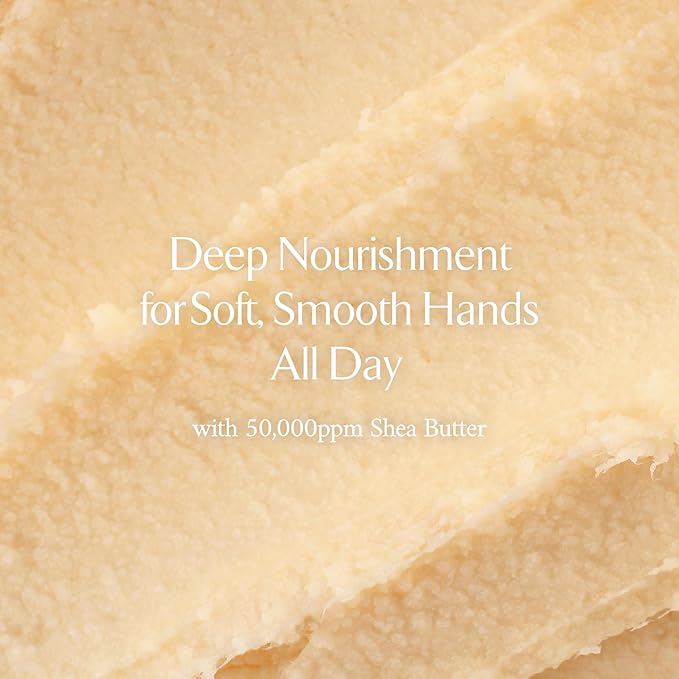 - [Deep Hydration with Shea Butter]: Packed with 50,000 ppm of nourishing shea butter, this rich formula provides intense moisture for dry, tired hands, locking in hydration for hours and leaving skin velvety-soft.