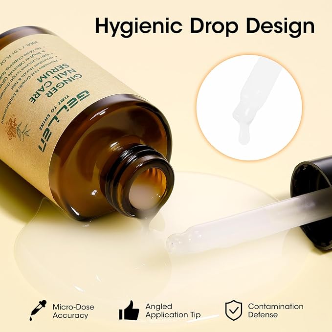 Gellen 30ml Ginger Nail Growth Serum for Nail Strengthener and Growth, Nail Repair Treatment for Weak Brittle Splitting Damaged Nails, Hydrated & Nourished Nail Care Solution for Hands & Feet