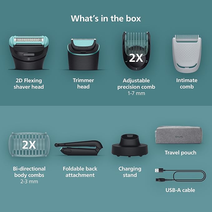- INTERCHANGEABLE, DUAL TRIMMER & 2-D FLEXING SHAVER HEADS for efficient full body trimming with the skin protection you need and a close, yet comfortable shave that follows the contours of your skin