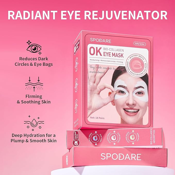 OK Shape Eye Masks, 360° Fit Under Eye Patches with Caffeine and Collagen, Firming & Hydrating Eye Mask for Dark Circles and Puffiness, Self Care Gifts for Women - 18 Pairs, Mystery White