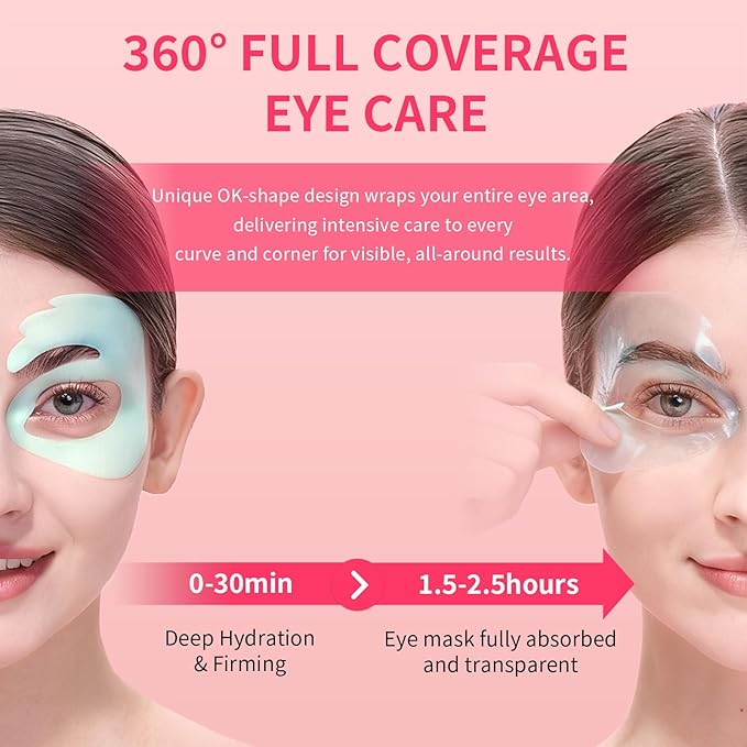 - 360° Full Eye Contour Fit: Our unique OK-shaped patches are a game-changer! The 'O' works its magic by wrapping around your entire eye area. It hydrates dry upper lids, tackles crow's feet, and cares for the under-eye zone all at once. This all-in-one, targeted method delivers far more comprehensive care than a basic patch