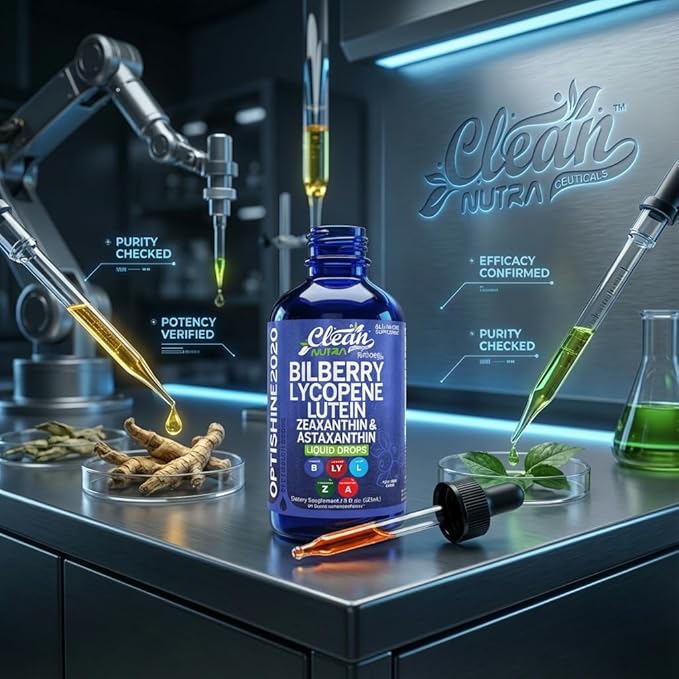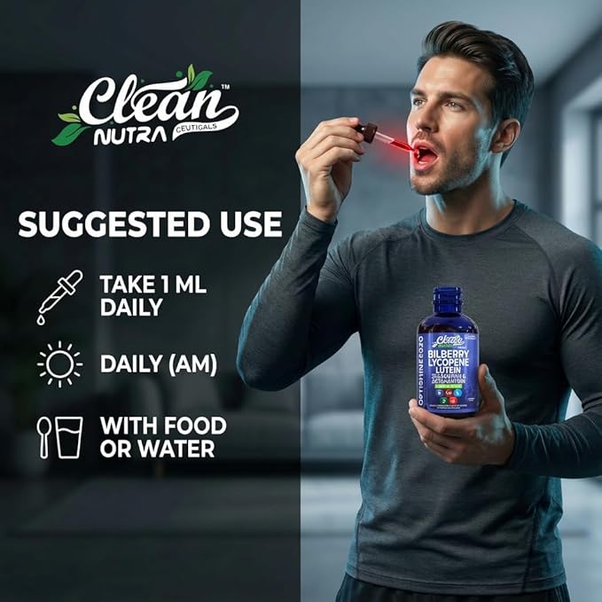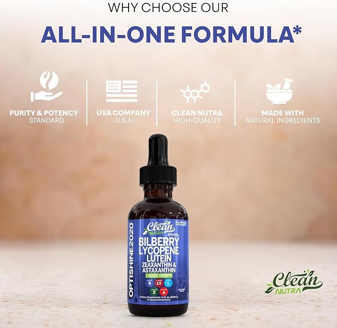 - ALL-IN-ONE EYE SUPPORT BLEND: UNLOCK natural lycopene, zeaxanthin, lutein, and astaxanthin benefits with Clean Nutra drops providing bilberry for immune system support. This potent bilberry lycopene supplement contains organic astaxanthin, organic lutein, organic zeaxanthin, organic bilberry, and organic lycopene for comprehensive overall wellness. Conveniently combine powerful astaxanthin extract, zeaxanthin extract, bilberry extract, lycopene extract, and lutein extract in one potent formula.