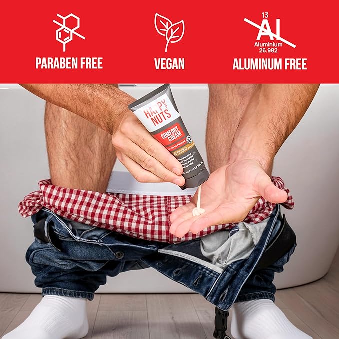Happy Nuts Comfort Cream Deodorant For Men: Anti-Chafing Sweat Defense, Odor Control, Aluminum-Free Mens Deodorant & Hygiene Products for Men's Private Parts 3.4 Fl Oz (1 Pack), Big Wood