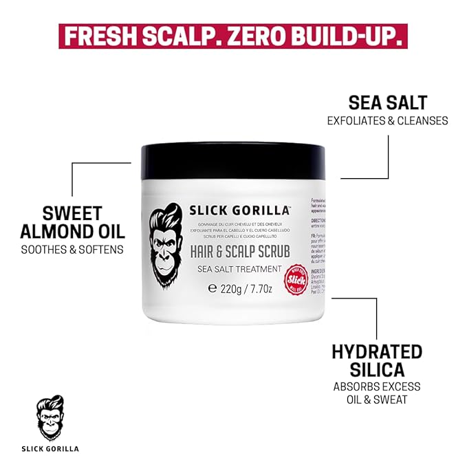 Slick Gorilla Scalp Scrub with Sea Salt, Exfoliating Cleanser for Oily Hair & Build Up, Deep Cleansing Head Scrub & Scalp Treatment, Detox Care for Fresh Roots, and Healthy Looking Hair