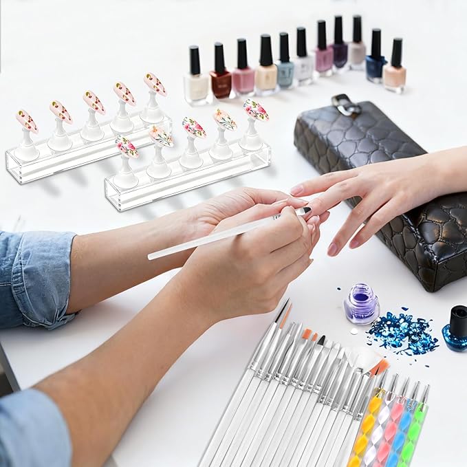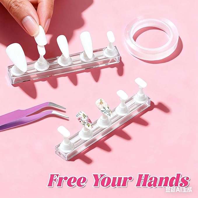 - Magnetic Nail Stand System: Holds 10 nail tips simultaneously with secure magnetic bases, preventing slippage during painting or decorating. Includes clear double-sided tape for easy adhesion of press-on nails, streamlining design workflows for DIY users and salon technicians.
