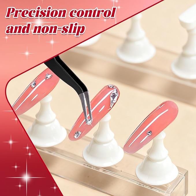 - Efficient Nail Art Accessories: Tweezers with curved tips securely grasp tiny embellishments (sequins, rhinestones) or peel stickers precisely, avoiding fingerprints. Combined with stands and brushes, this kit reduces setup time and clutter for home manicures, salon displays, or press-on nail customization.